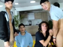 Twink gang banged by 9 gays and sprayed with sperm
