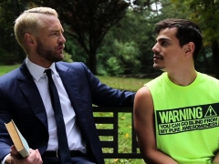Horny cop lures young gay slut into taking his big cock